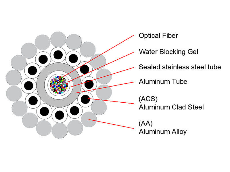 سیم زمینی نوری رشته ای (OPGW) با دو یا سه لایه سیم فولادی پوشانده شده با آلومینیوم (ACS) ، یا ترکیبی از سیم های ACS و آلیاژ آلومینیوم تولید می شود.این طراحی برای پاسخگویی به نیازهای ساختاری و مکانیکی مشترک خطوط انتقال برق بهینه شده است.